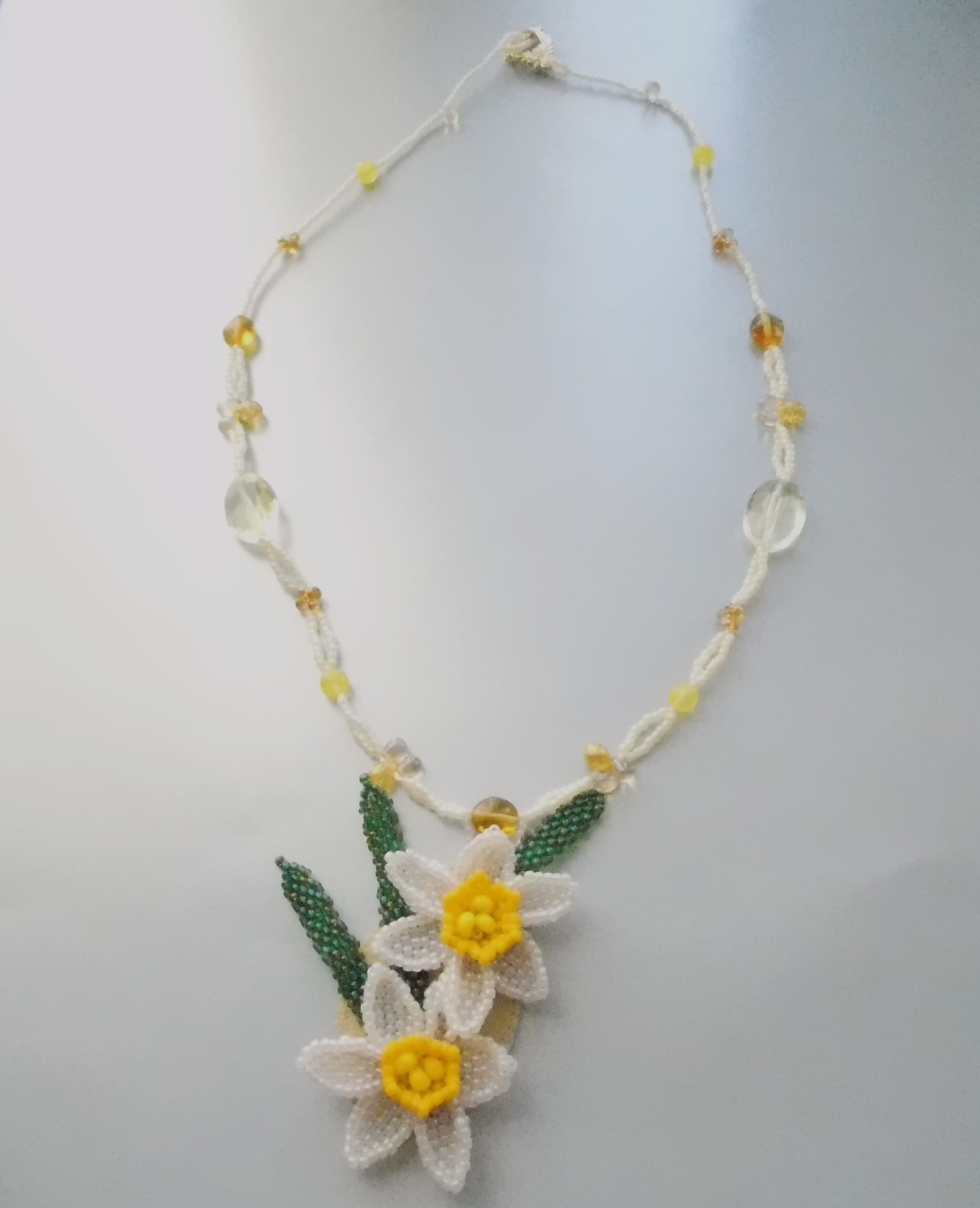 水仙の花をトップにしたビーズステッチのキットのネックレスです。